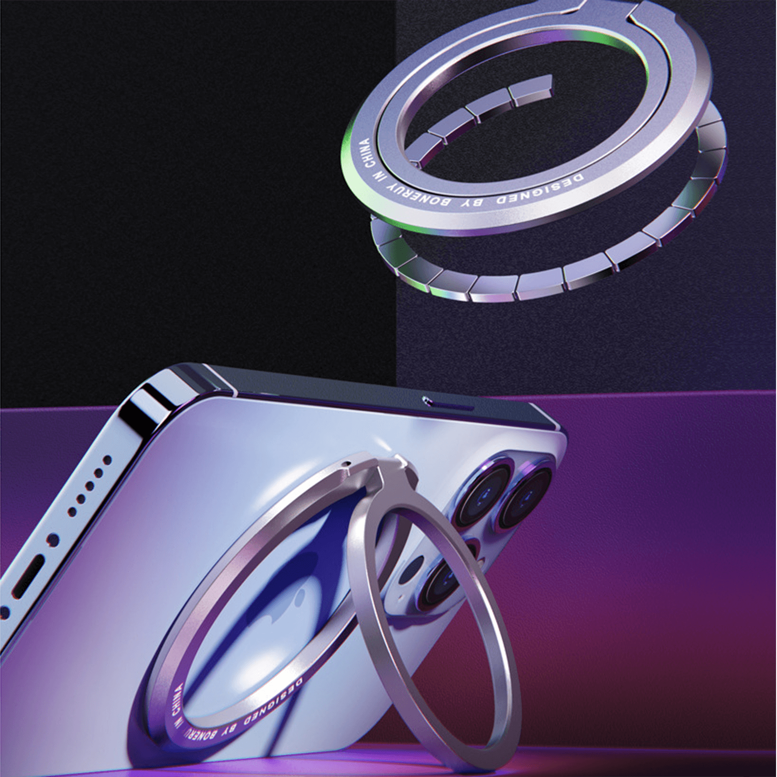 Metal Magnetic Phone Grip MagSafe Finger Loop & Horizontal Ring Stand for iPhone