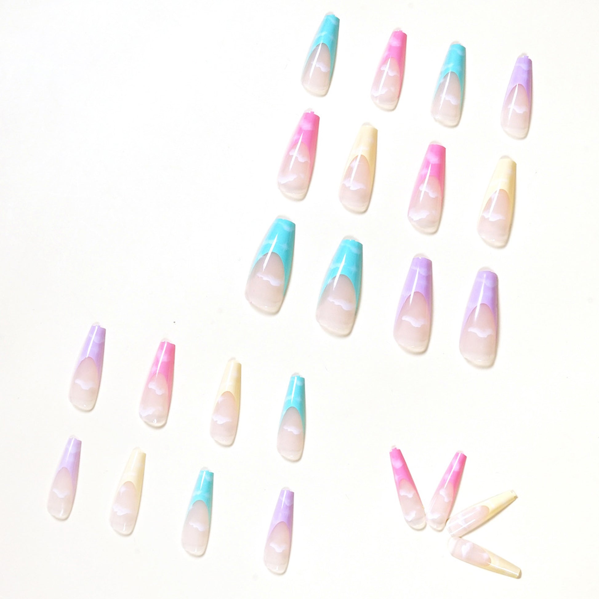 Stick 'em on with ease & you're ready to go - these nails look great for any occasion, from casual to the fanciest of events. So, spread your wings & show off your vibrant rainbow effect, with our Cloud Long Ballerina Nails! 🤩