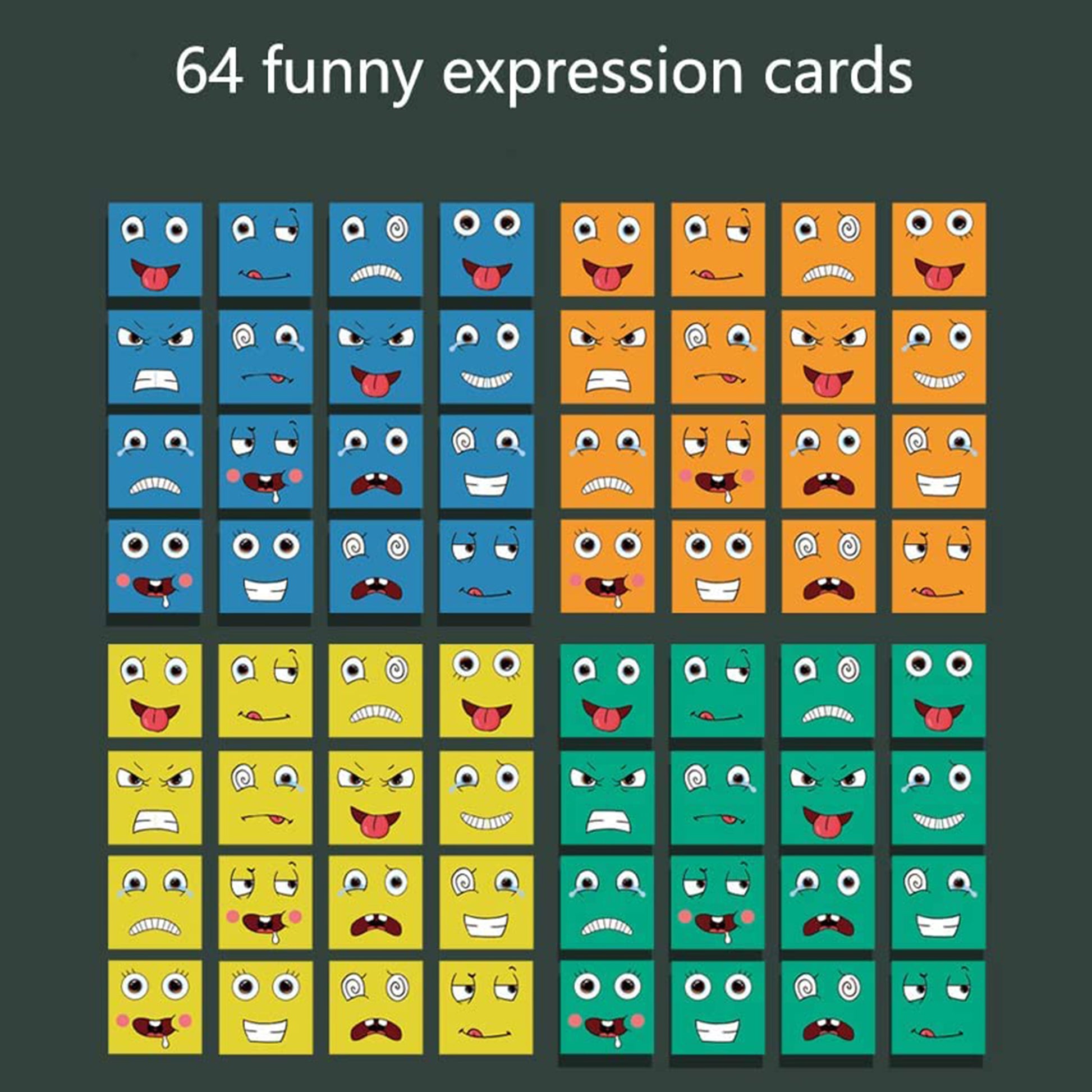 These blocks come with cartoon expressions to match the 16x4 cards-- upping the opportunity for tons of game play.